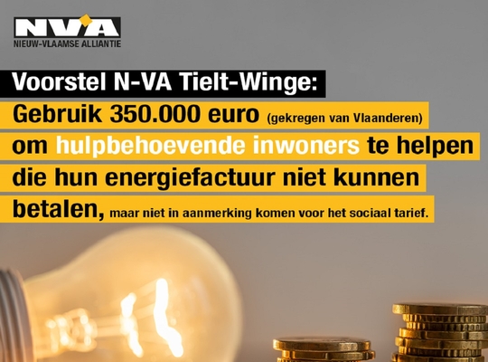 Energiesteun? Niet in Tielt-Winge Kan u de energiefactuur nog betalen? Ook in Tielt-Winge hebben mensen het moeilijk om op het einde van de maand rond te komen. De Vlaamse Regering geeft aan de gemeente extra middelen in het kader van de energiecrisis. N-VA diende een nota in binnen het bijzonder comité voor de sociale dienst (BCSD) om te onderzoeken hoe Tielt-Winge deze middelen kan gebruiken om haar hulpbehoevende inwoners te helpen bij het betalen van hun energiefactuur. Het voorstel werd niet aanvaard door de raad, de mandatarissen van Open VLD stemden zelfs tegen het voorstel. “Onbegrijpelijk dat de traditionele partijen onze inwoners in de kou laten staan”, aldus fractievoorzitter Tom Werner.